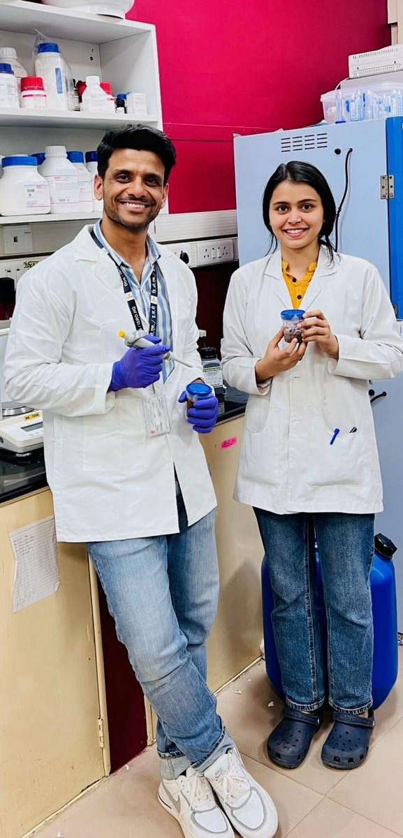 Shubhanshu Shukla (left) and Swati Dubey (right) in the lab (Credit: Aloke Lab, IISc)