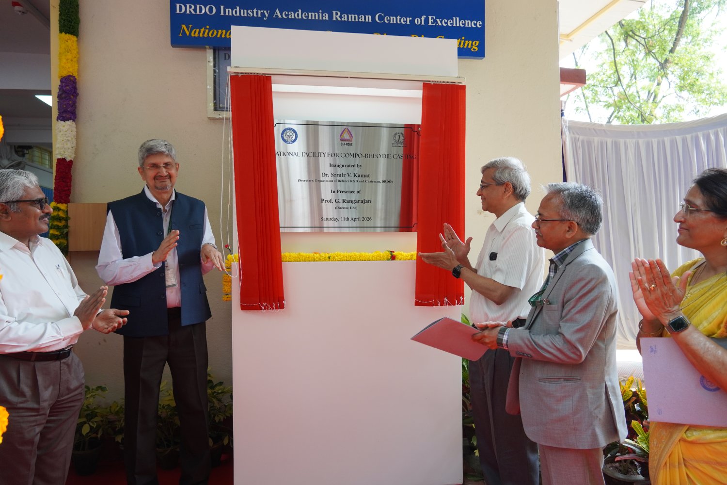 On 11 April 2026, Dr Samir V Kamat, Secretary, Department of Defence R&D (DDR&D) and Chairman, DRDO, inaugurated the National Facility for Compo-Rheo Die Casting (CRDC) in the presence of Prof Govindan Rangarajan, Director, IISc, on campus. The event also marked the formal handover of project deliverables matured under the joint research projects of DRDO, industry, academia, the Raman Centre of Excellence, and IISc.