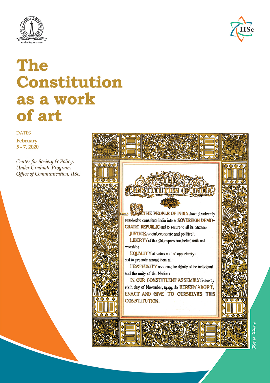 The Center for Society and Policy, the UG program and the Office of Communications cordially invite you to an exhibition that examines our Constitution through the lens of an artist.